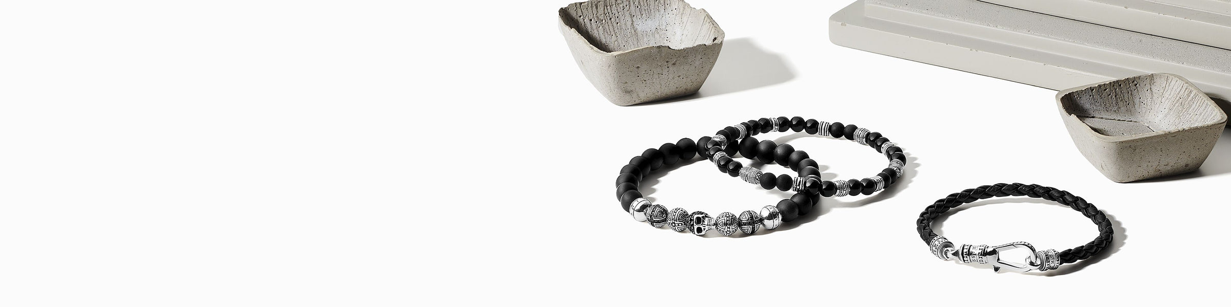 If you're after bracelets men actually wear, you're in the right spot. We make pieces from genuine stones, quality leather, and blackened sterling silver – stuff that looks good and lasts.