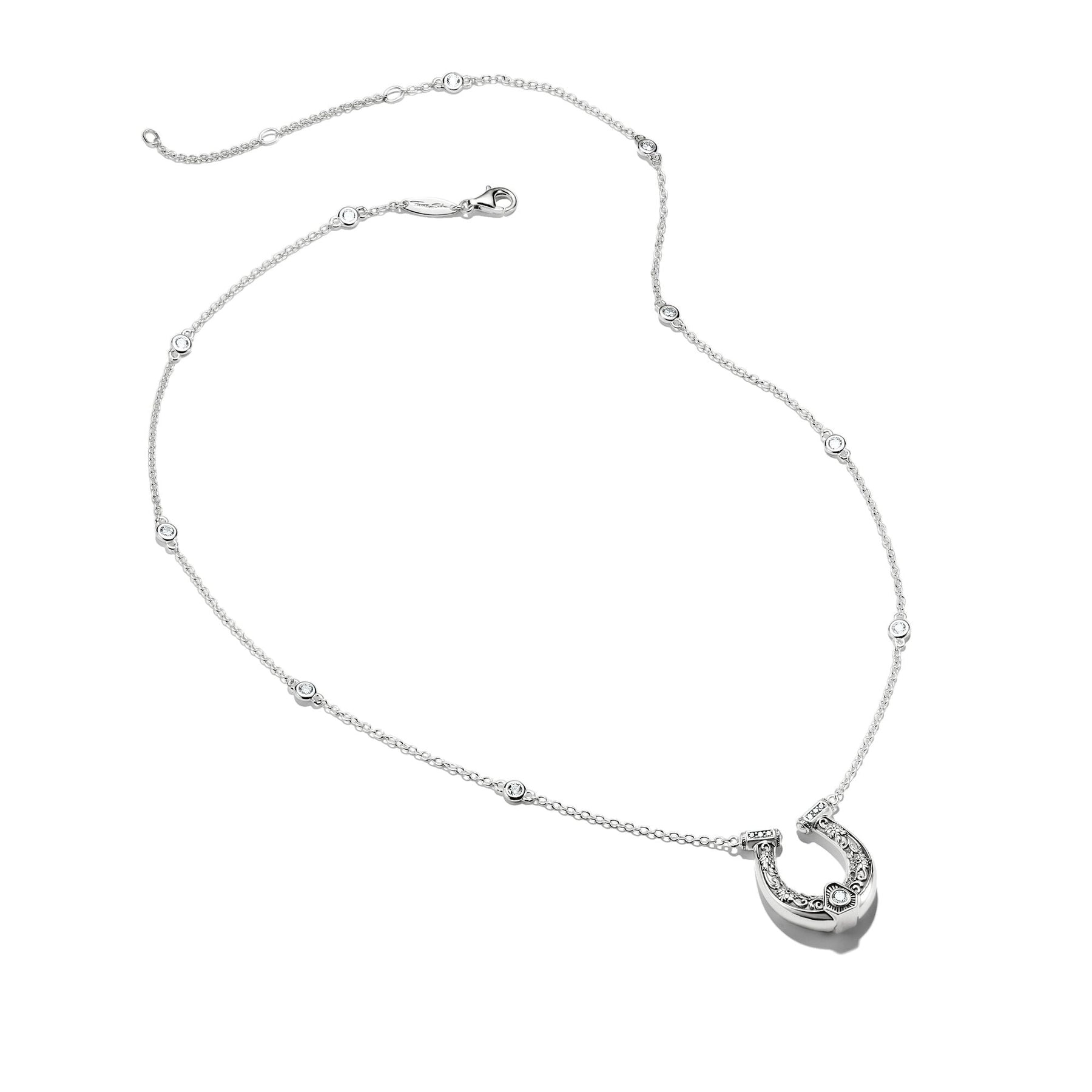 A necklace that carries the power of the earth within it: Delicate zirconia elements shine along the blackened silver chain and lead to the centrepiece - a finely crafted horseshoe with floral symbols, sublime details and delicate engravings. This piece of jewellery from the Elyndra collection combines protection, movement and mythical grace - as a stylish lucky charm with deep meaning.