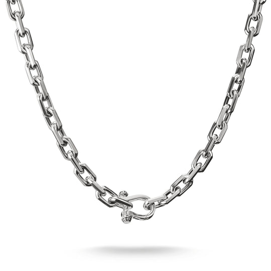 This link chain impresses with its striking design and high-quality craftsmanship. The solid chain made of blackened 925 sterling silver is 55 cm long and makes a powerful statement. A special eye-catcher is the horseshoe clasp, which perfectly matches the Western-inspired aesthetic of the chain. Whether layered or worn on its own, this chain emphasises your individual, rebellious side.