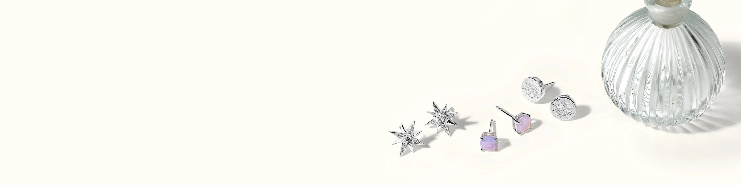 All ear studs are made from 925 sterling silver with options for gold plating and zirconia stones.