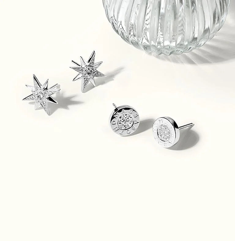THOMAS SABO ear studs offer a range of designs made from 925 sterling silver, with some plated in 18k gold or set with zirconia and gemstones. The collection includes silver ear studs, gold ear studs, and ear piercing studs for different styles and occasions.