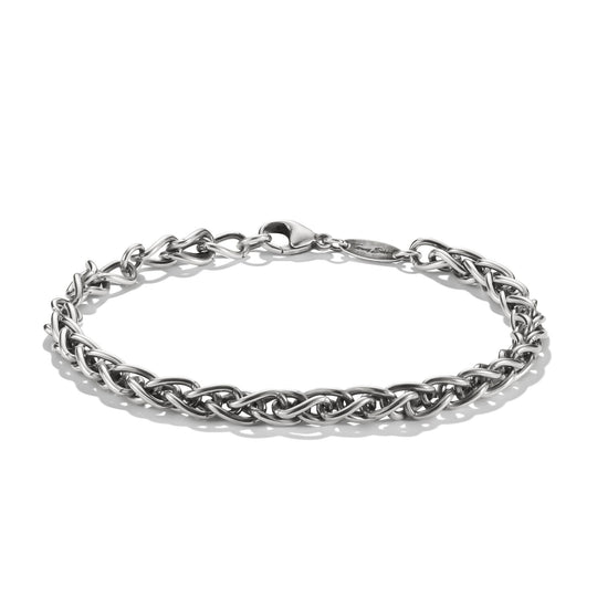 Rustic sophistication meets Western flair: with its finely interwoven structure made of blackened 925 sterling silver, the braided bracelet is reminiscent of braided leather reins – a stylish reference to cowboy aesthetics. With a length of 19 cm and a thickness of 5 mm, the bracelet is perfect for wearing on its own or layered with other pieces.